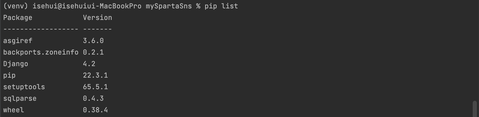 맨 위에 폴더명 앞에 venv가 비활성화 되어있는 상태로 pip list를 뽑아보니