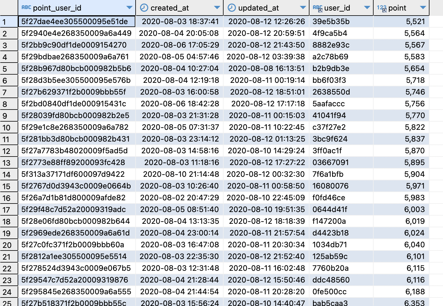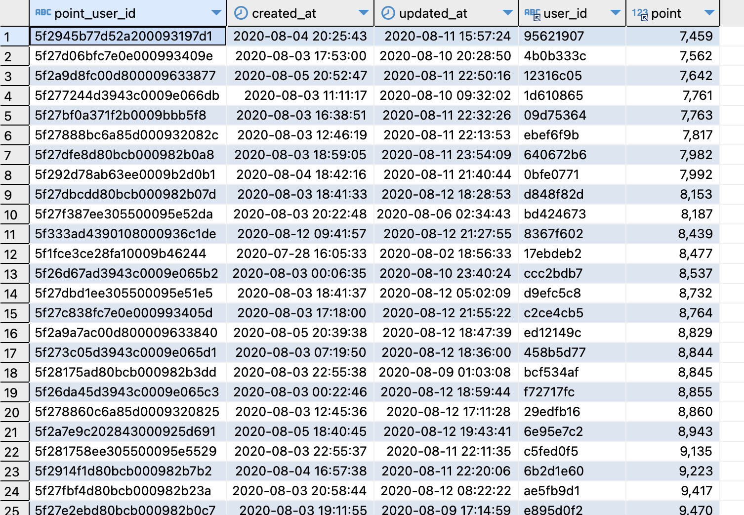 select pu.point_user_id, pu.point,