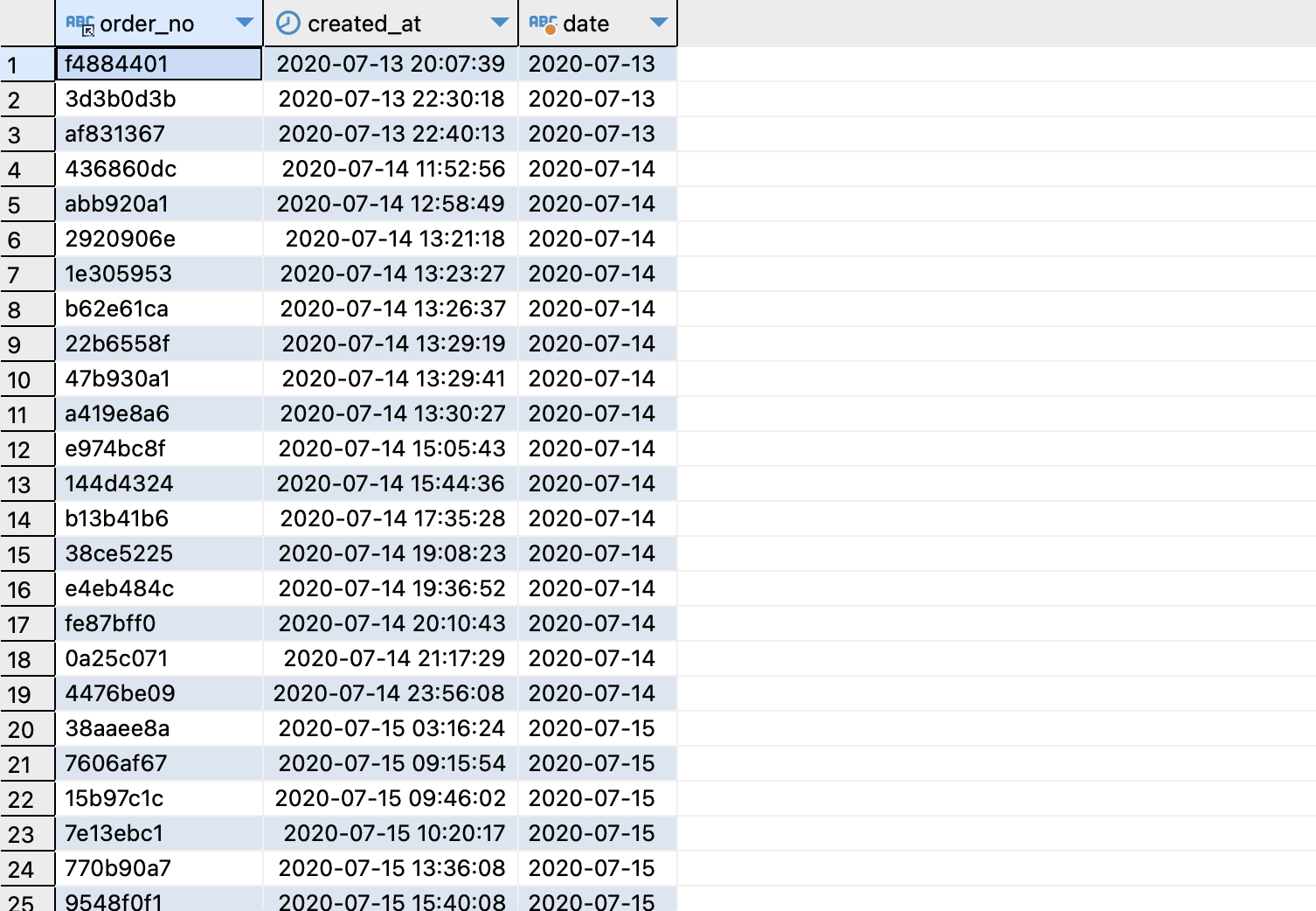 select order_no, created_at, substring(created_at,1,10) as date from orders