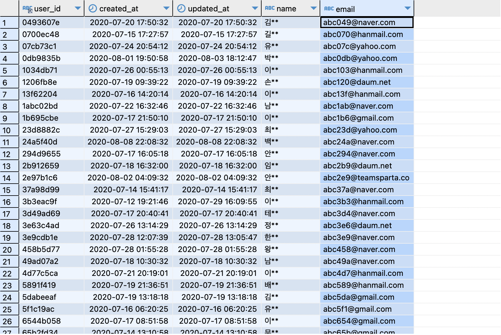 select u.user_id, u.name, u.email from users u